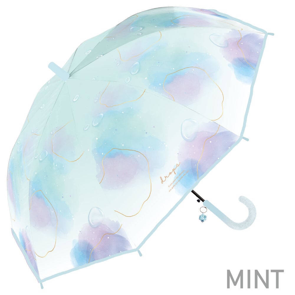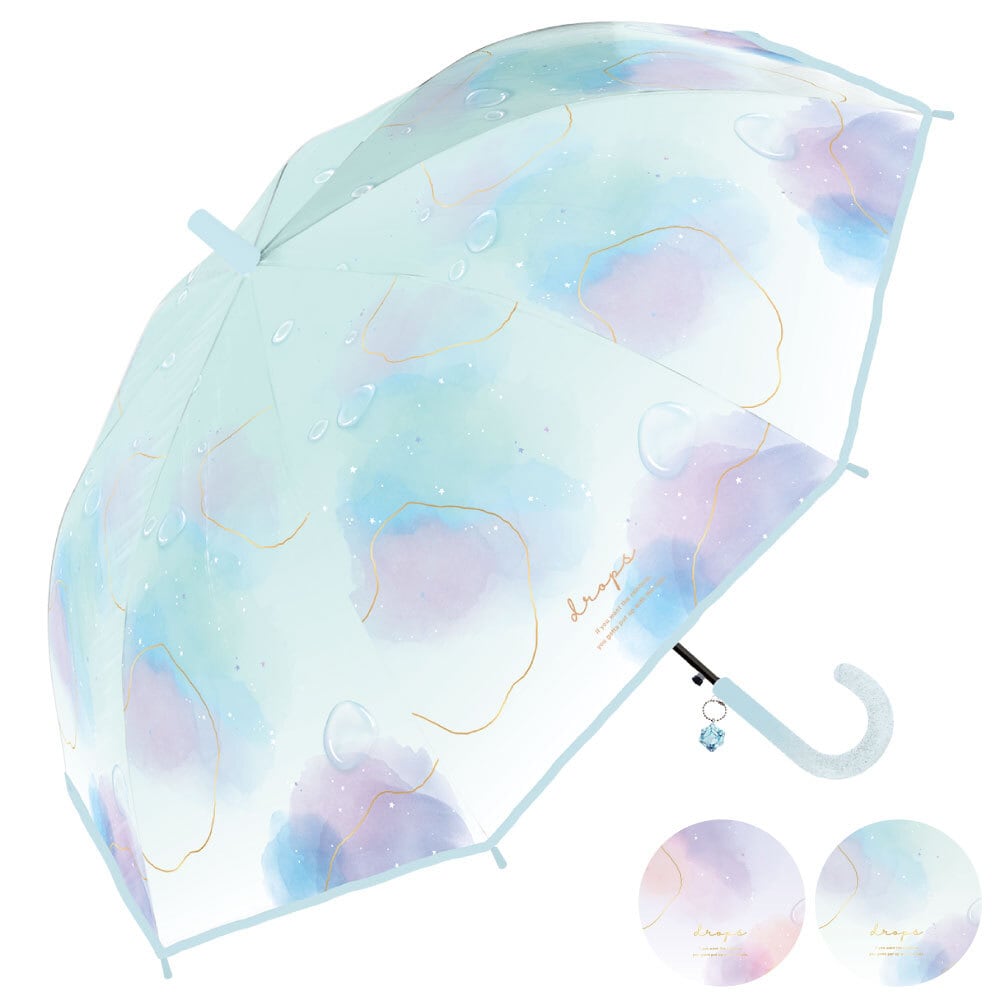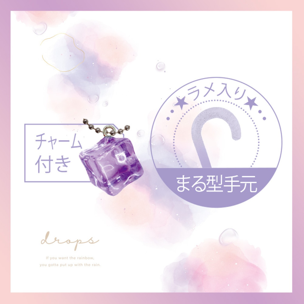 滲んだ水彩絵の具と水滴のデザイン。キラキラの氷型チャーム付。