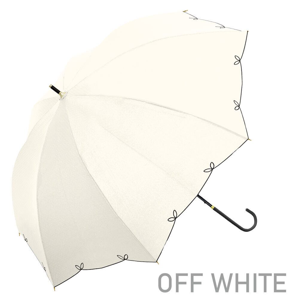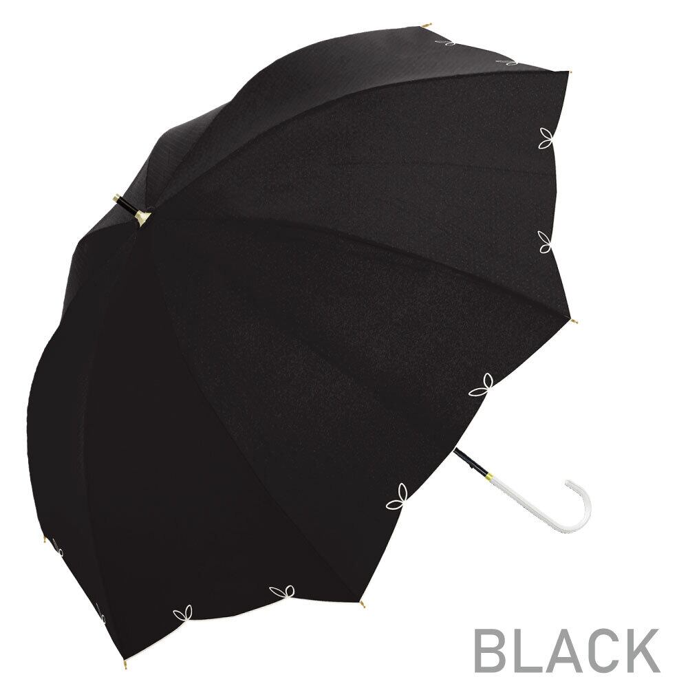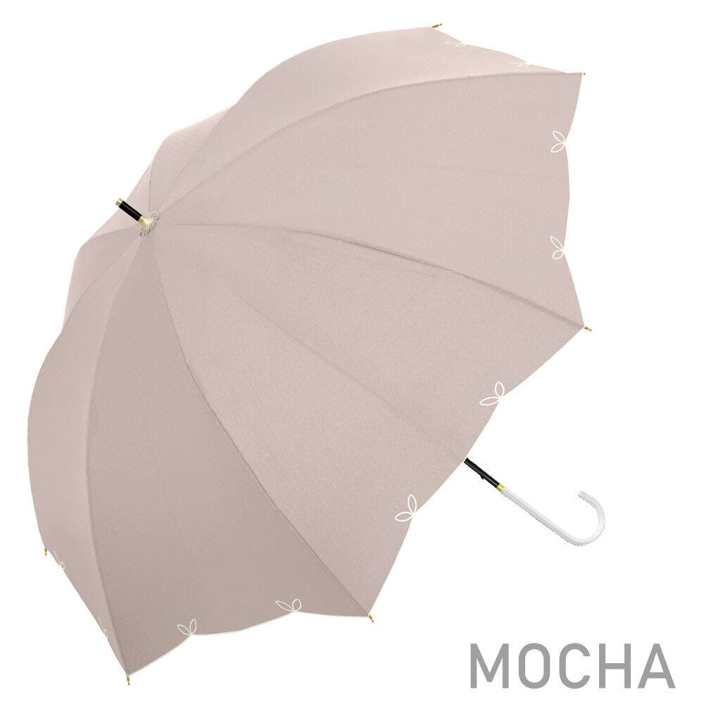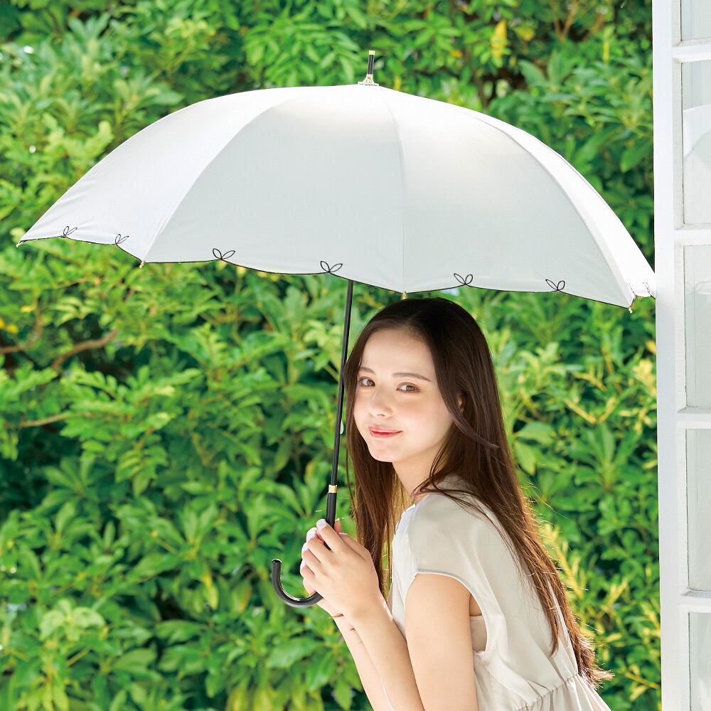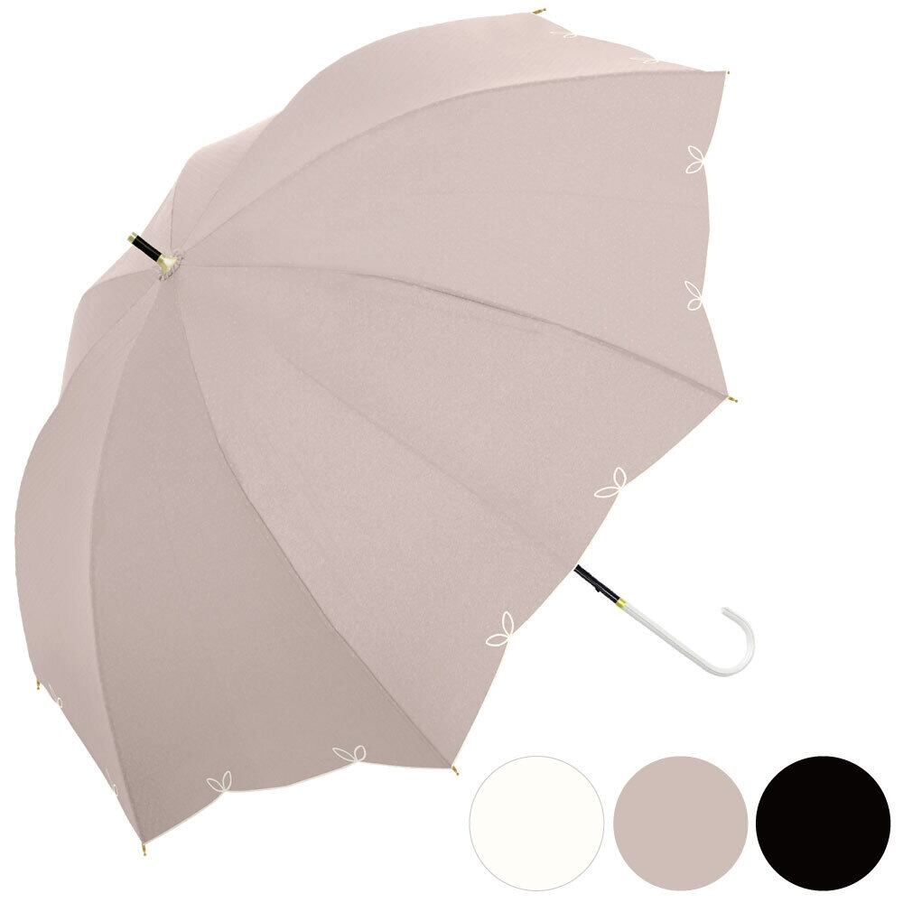 お花の刺繍が目を惹く晴雨兼用傘。裾が少しウェーブしたヒートカットが優しい印象を与えてくれます。