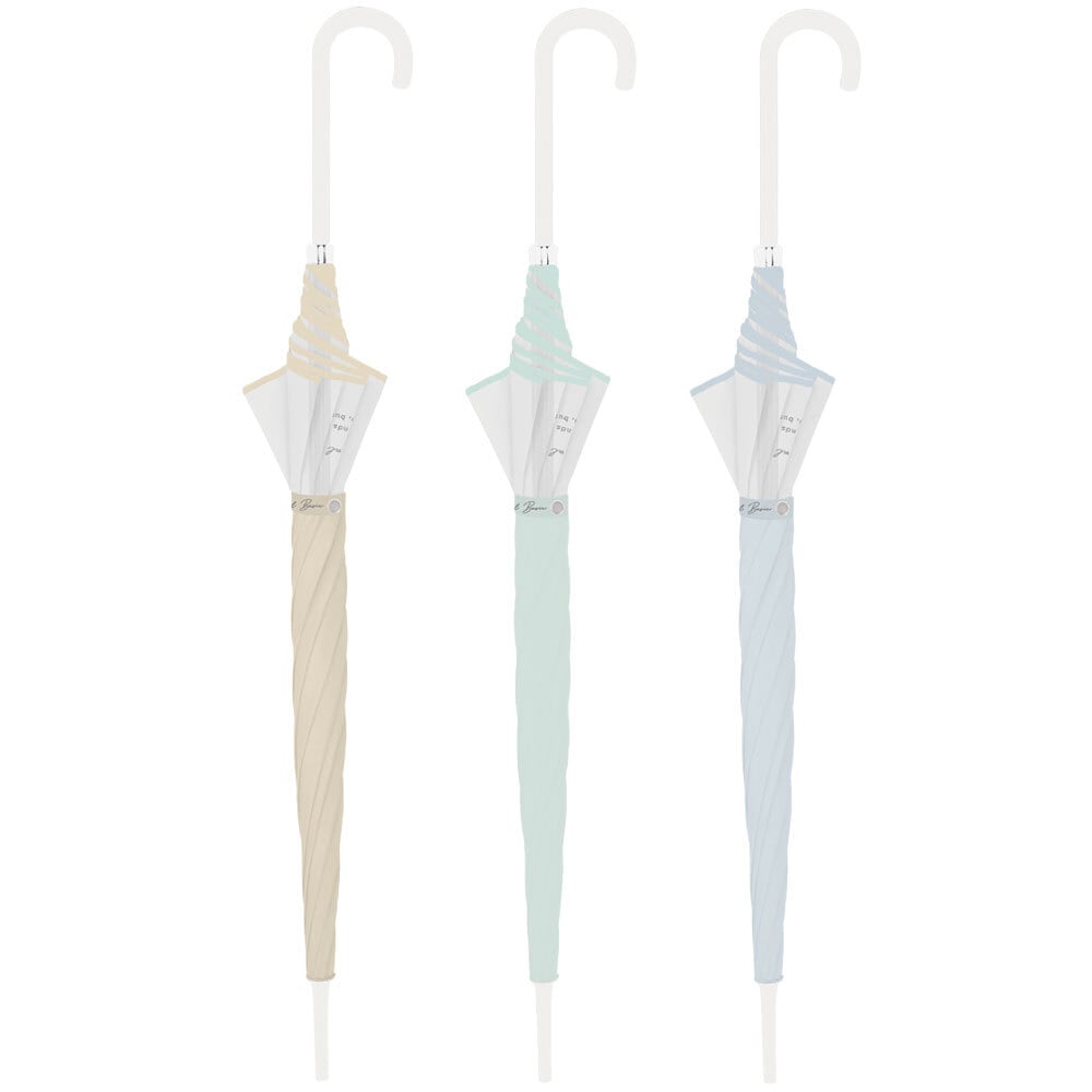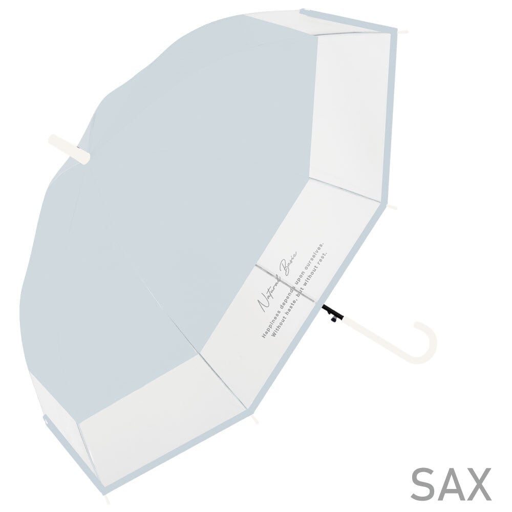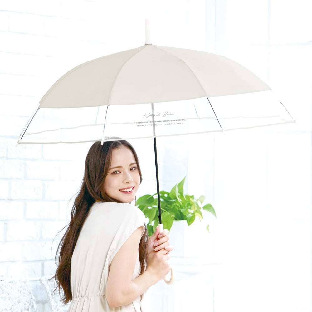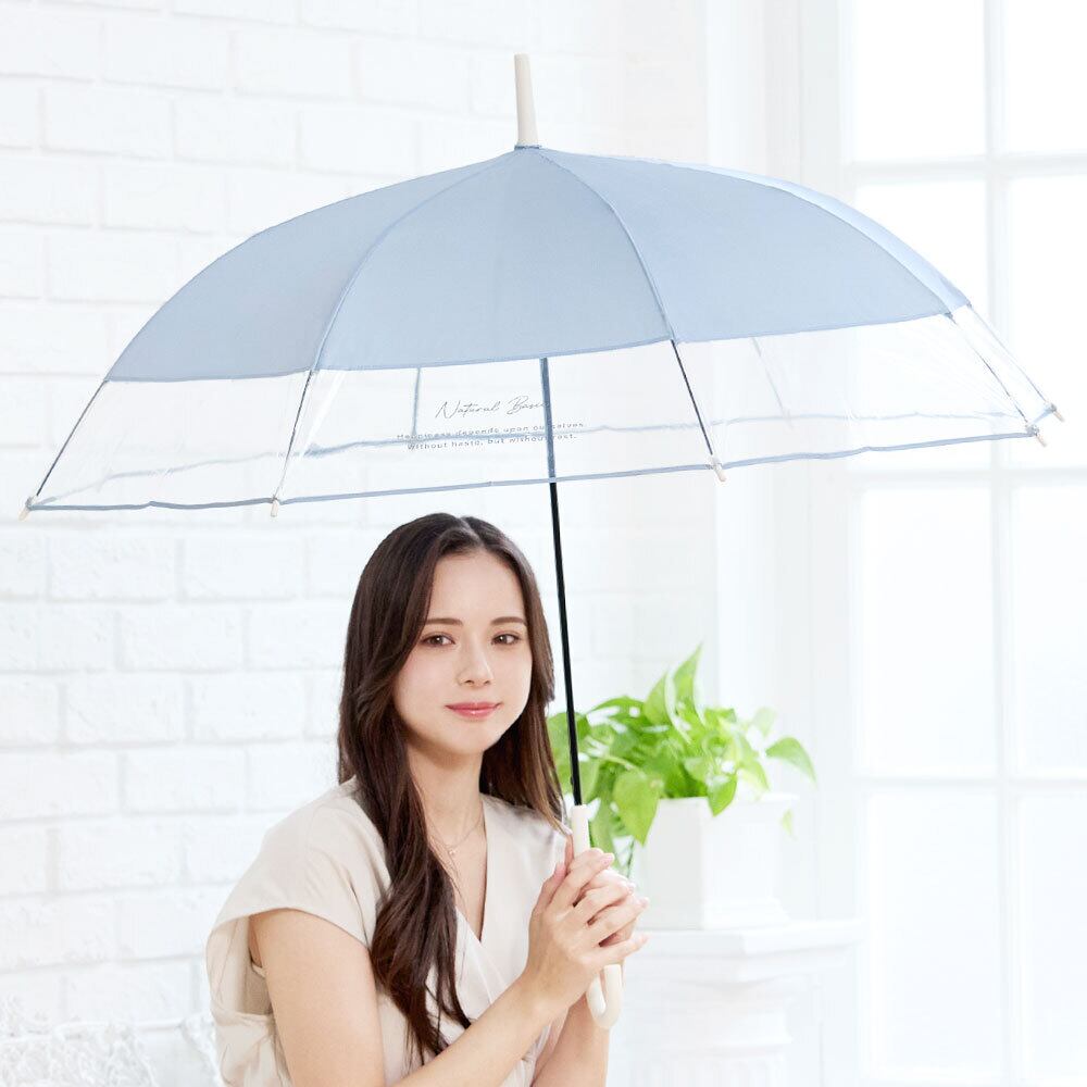 目元の高さが透明ビニールになっている、バイカラービニール傘です。ユニセックスでも使用しやすいカラー展開。