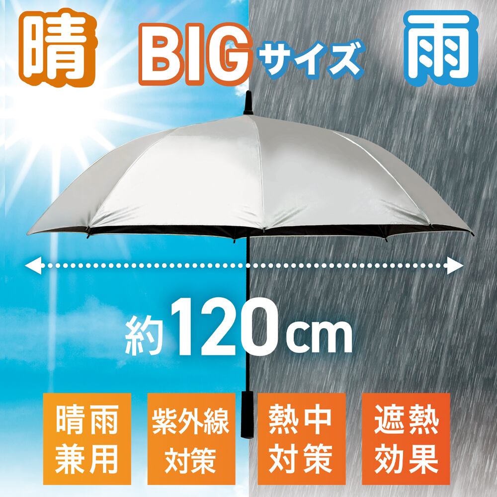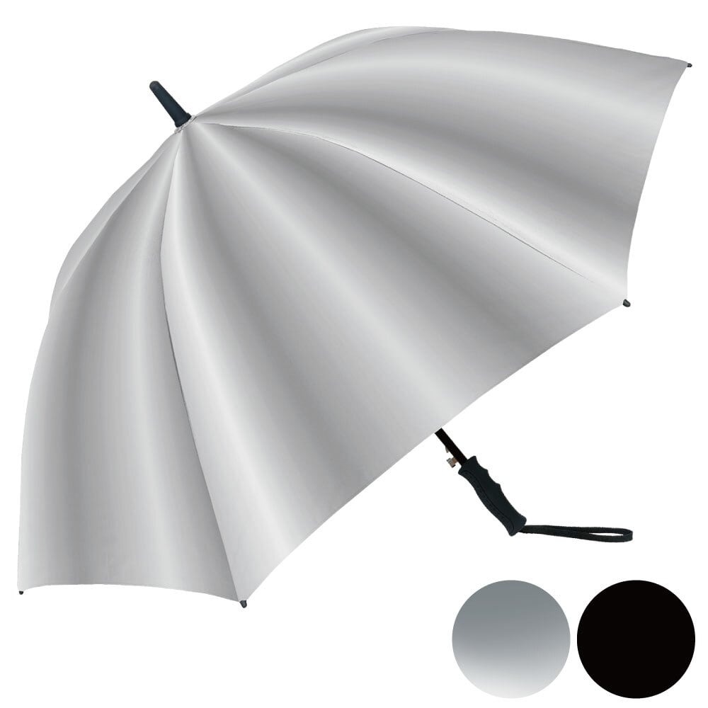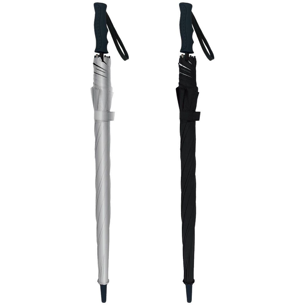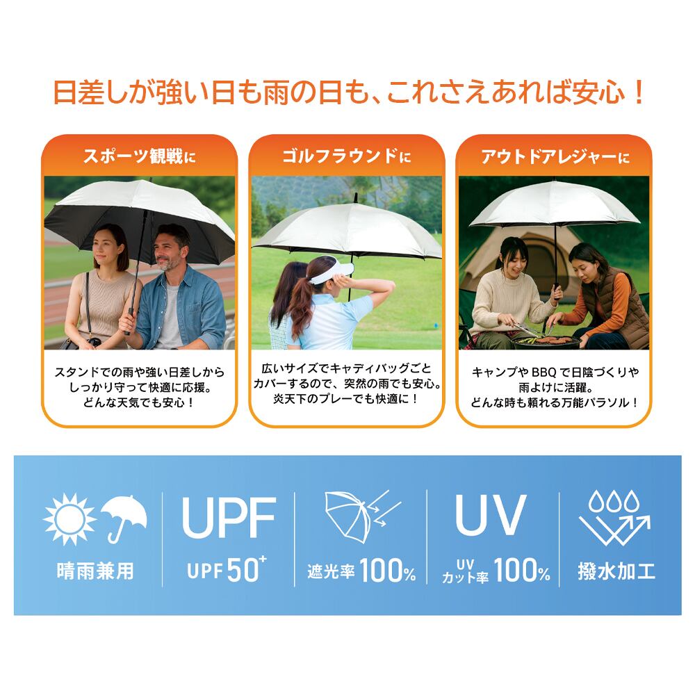 大きめサイズで日差しや暑さを軽減。手元は握りやすいグリップ形状で、スポーツや野外イベントにもおすすめです。丈夫で軽い耐風仕様。