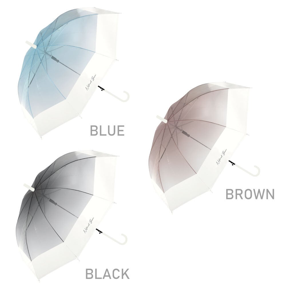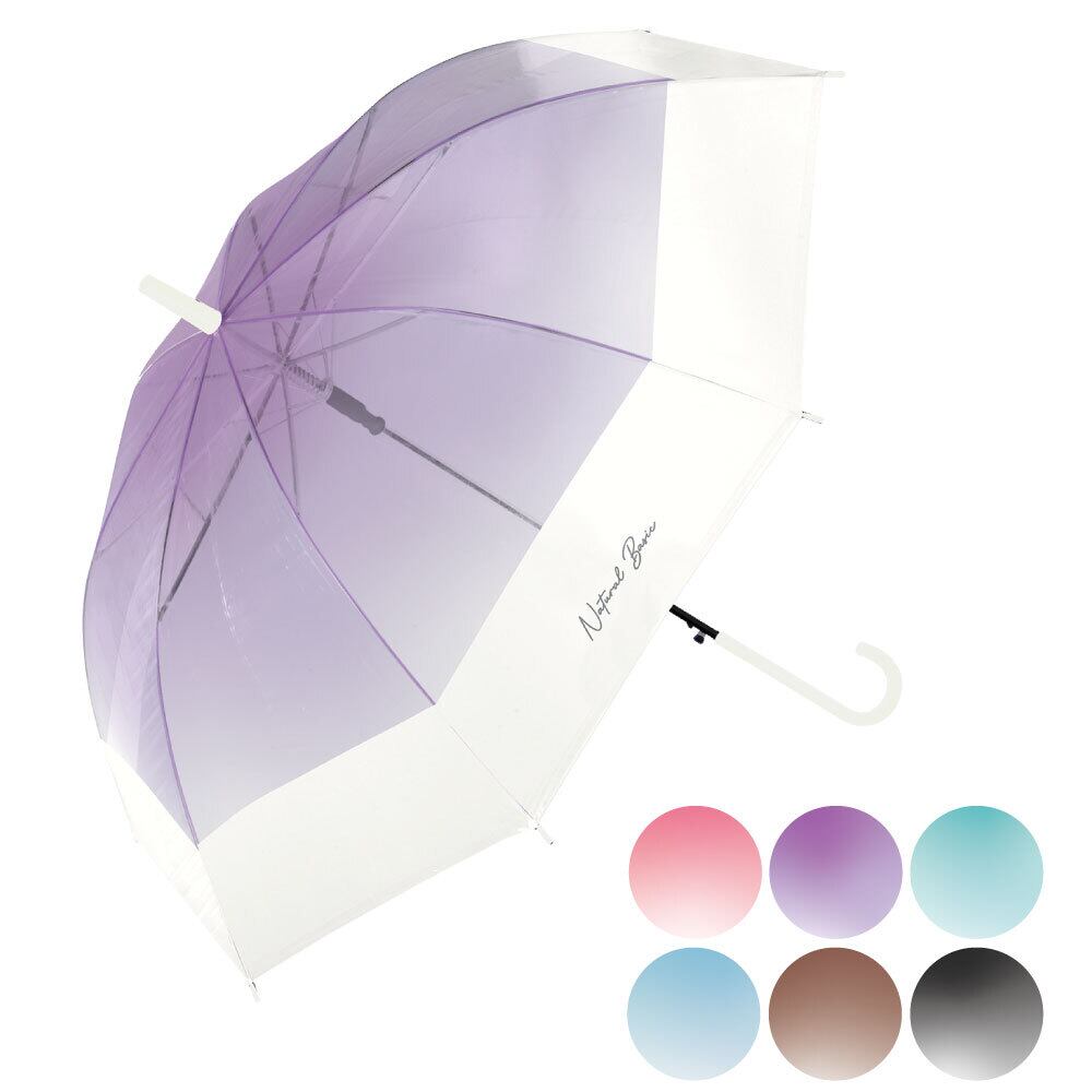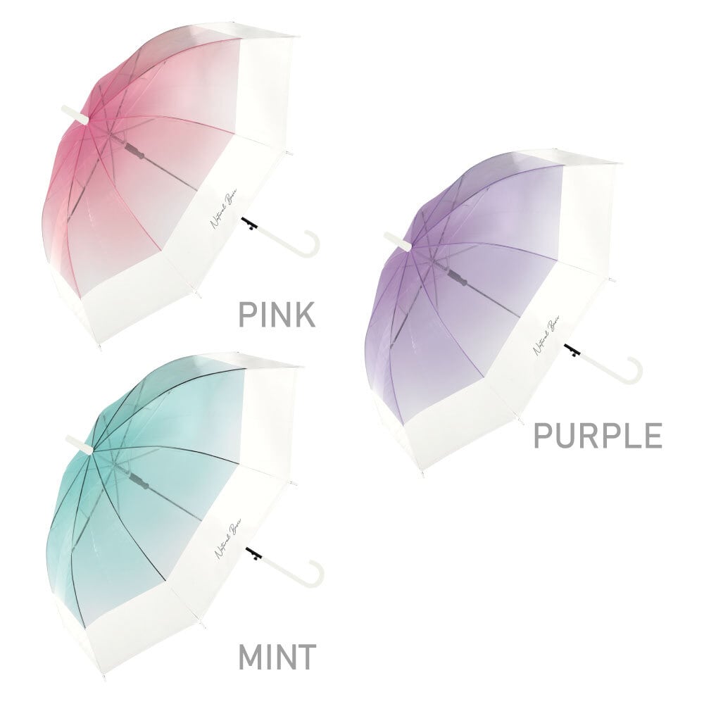 グラデーション&バイカラーと豊富カラー展開。カラーグラスファイバー骨がかわいいビニール傘です。