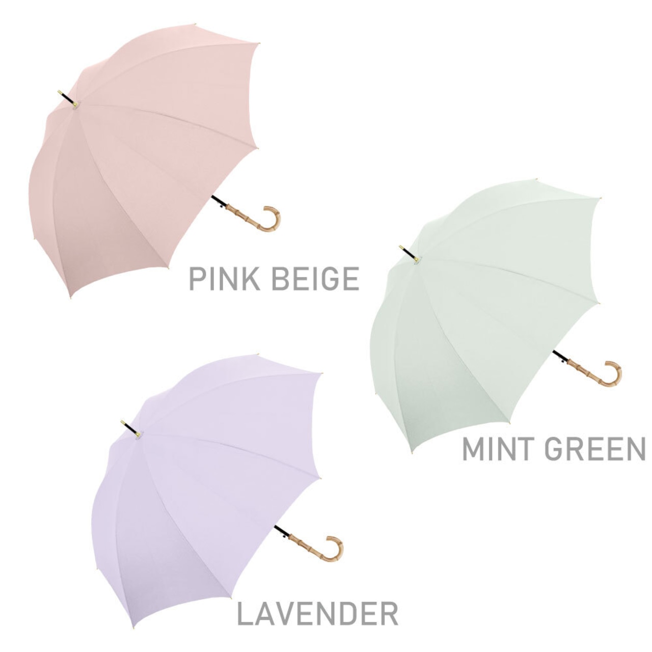 バンブー手元の無地傘です。ニュアンスカラーから定番カラーまで取り揃えました。
