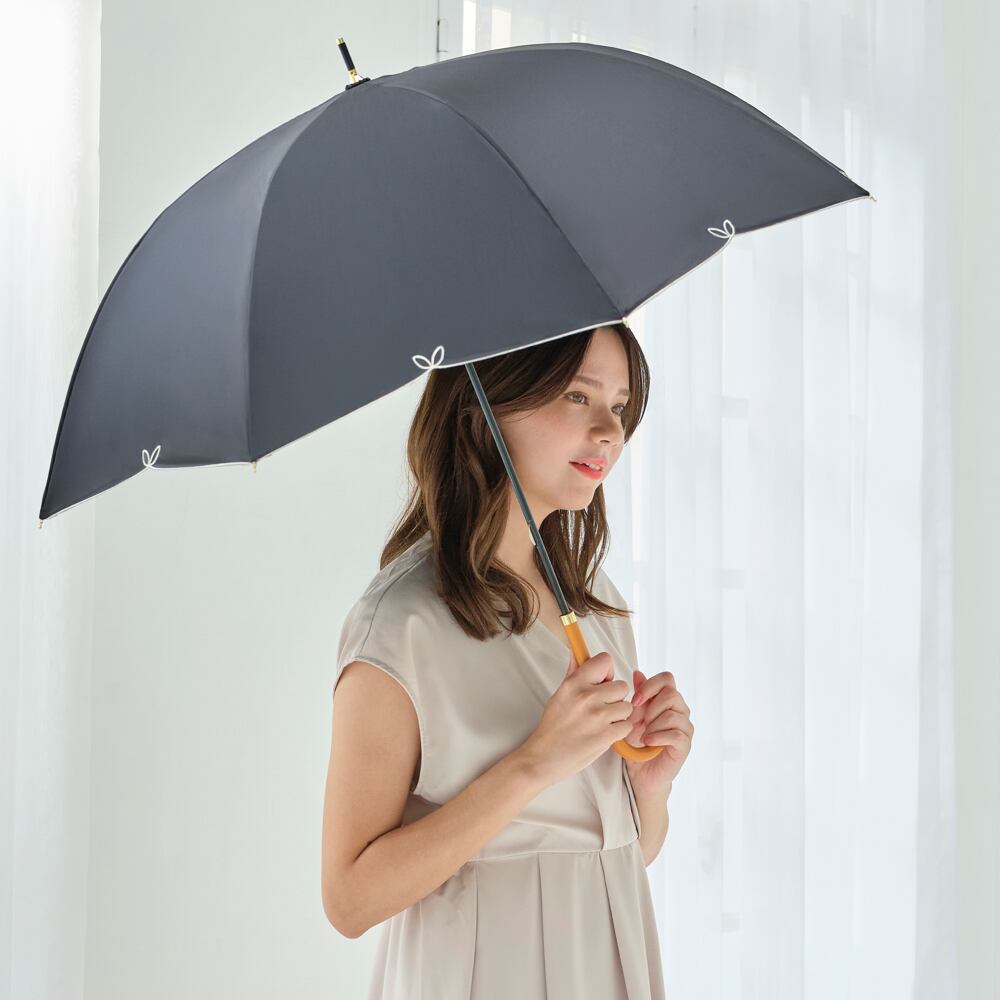 お花のような形の日傘です。リボンのような刺繍がアクセントで目をひきます。