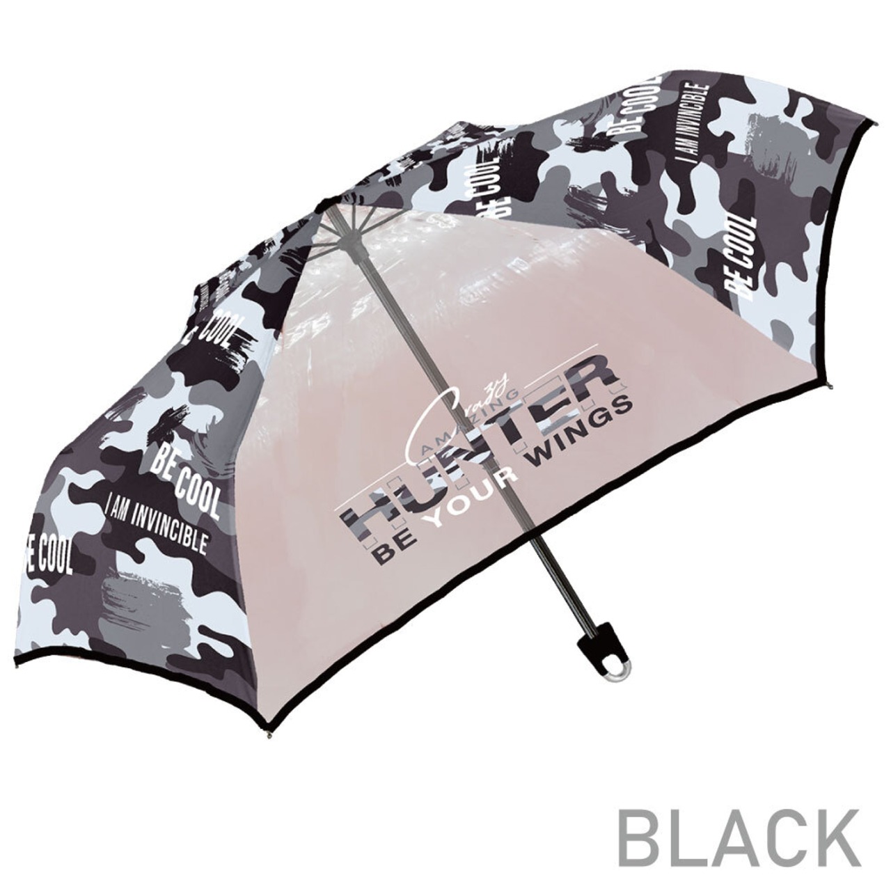 ペイント風のカモフラージュとクールなロゴがかっこいい!カバンに下げられるカラビナ手元仕様。