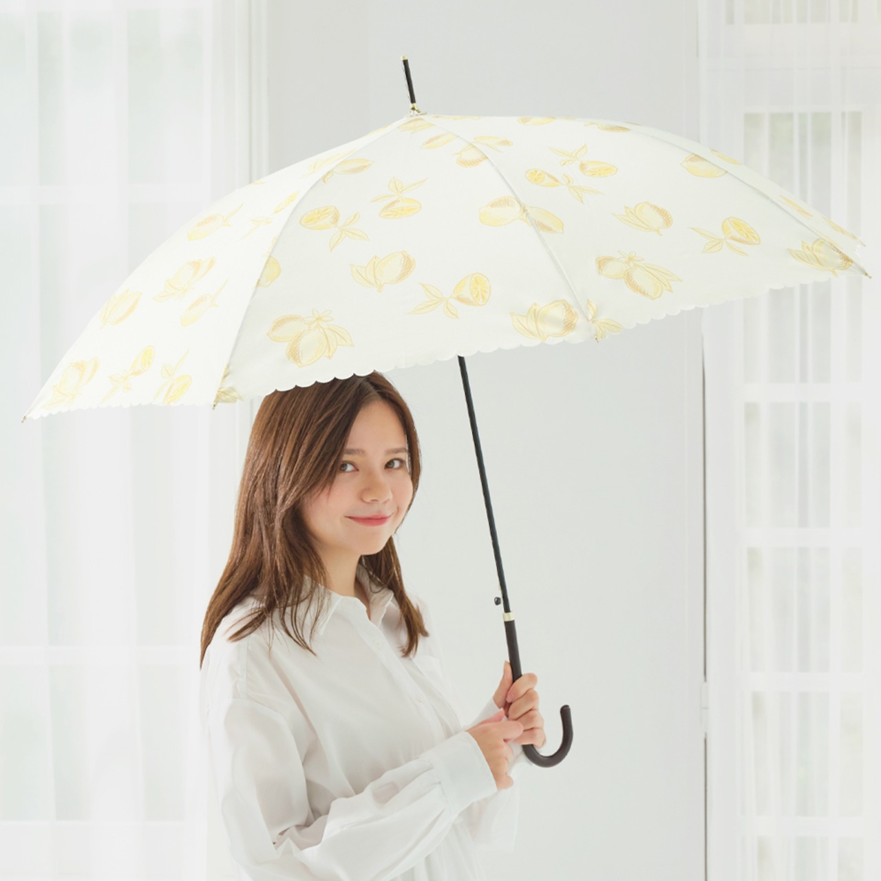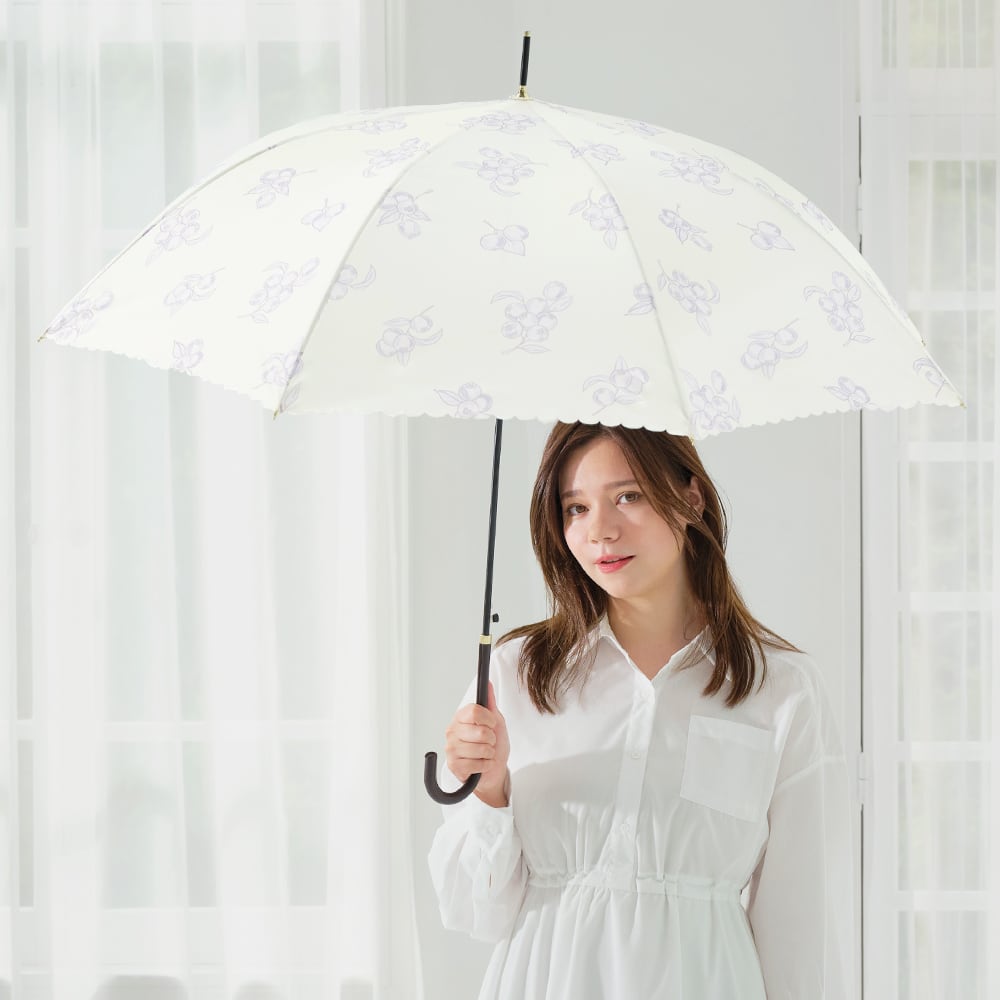 手描きフルーツ柄がカワイイ♪ヒートカットとゴールド手元がオシャレです。