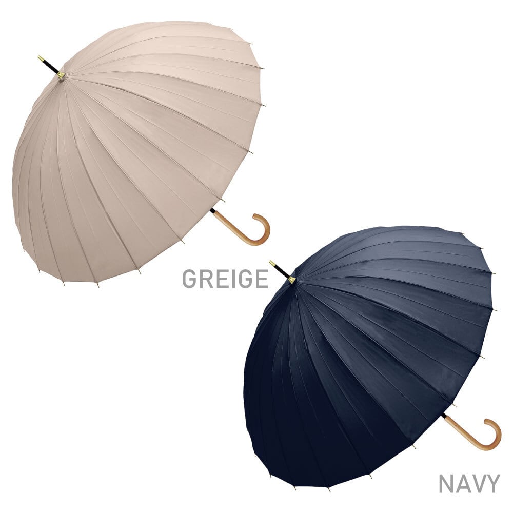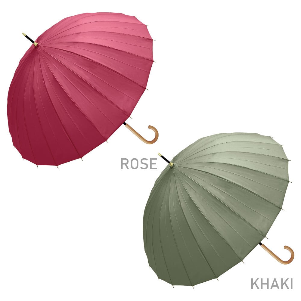 24本骨が新登場!デザイン性だけではなく雨風に対して強いのもメリット。握りやすい太めの手元、手開き&オールグラスで軽量!