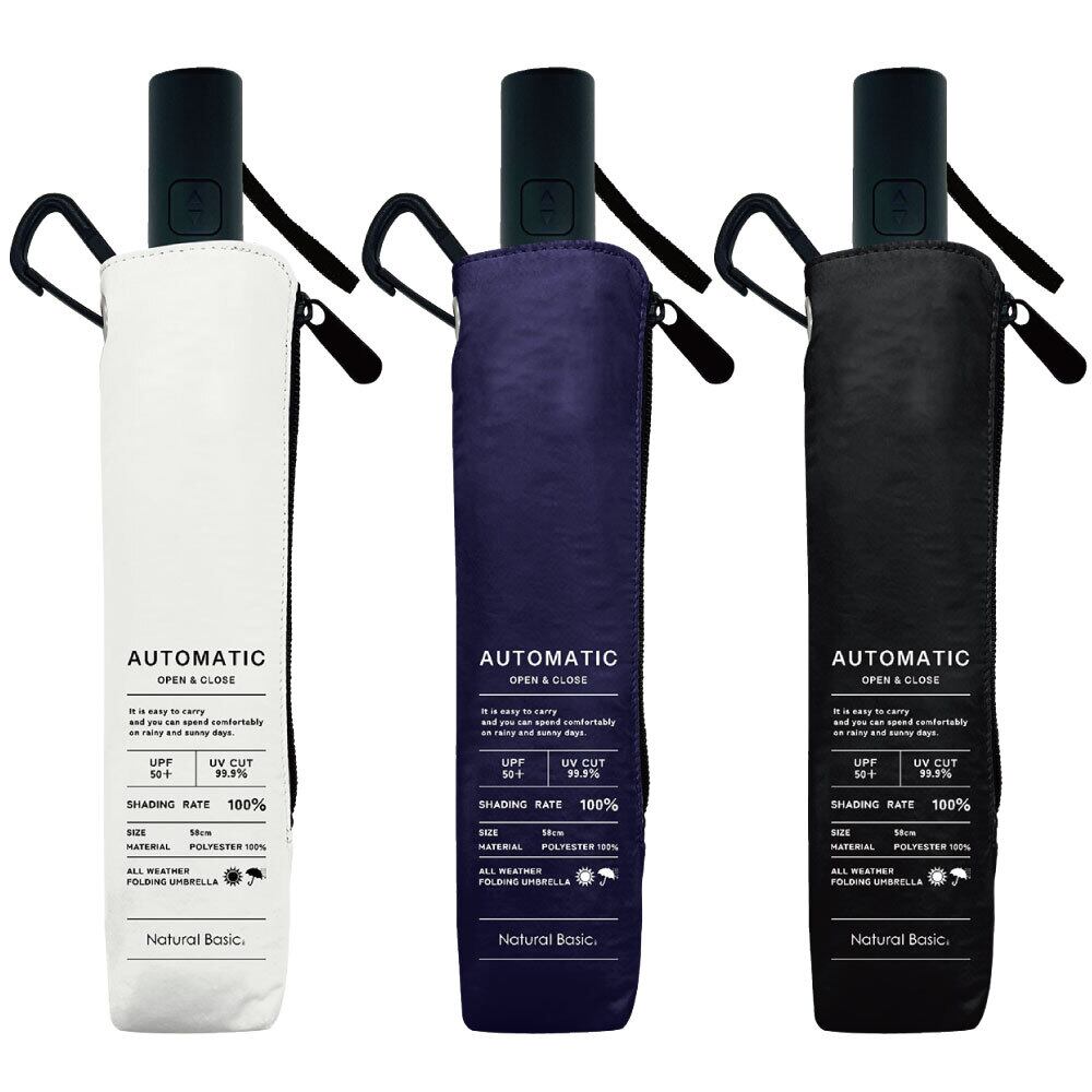 片手で開く便利な自動開閉傘です。逆戻り防止の安全装置付きで安心。収納袋にはカラビナ付き♪